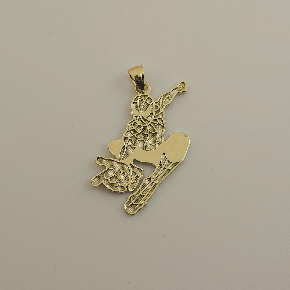 Unleash your inner superhero with this bold 10K gold Spider Hero charm. Featuring a dynamic pose and textured detailing, this pendant brings comic book energy to your chain. Perfect for fans of action and adventure.