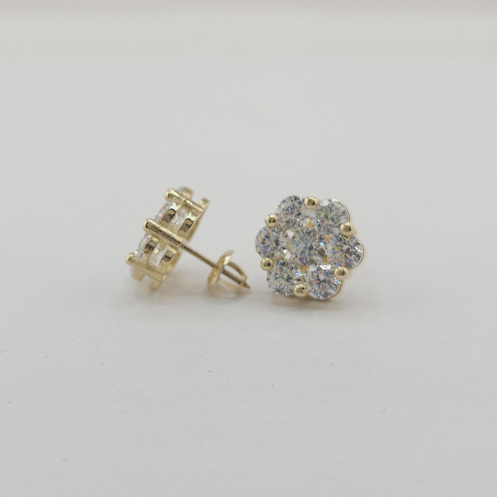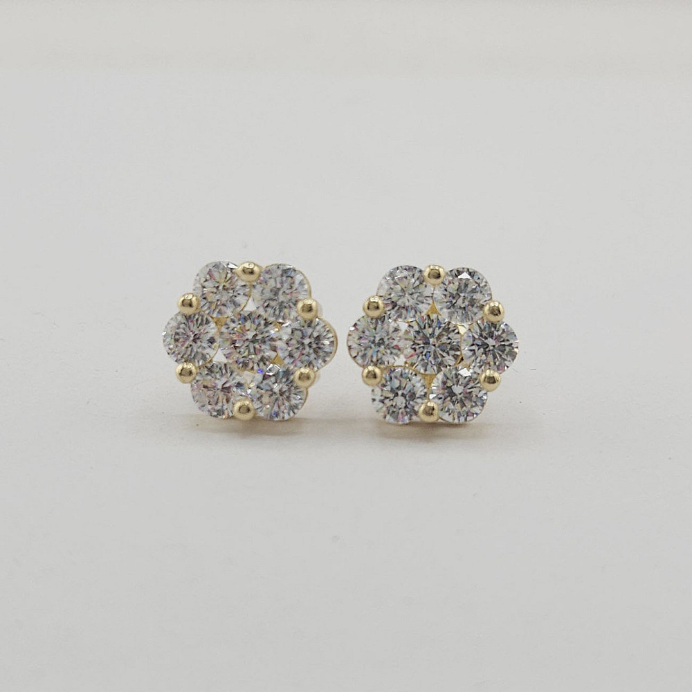 Add breathtaking sparkle to your everyday look with our customizable 10K Yellow Gold CZ Cluster Flower Stud Earrings. Designed to catch the light from every angle, these versatile studs are a must-have for any jewelry lover.