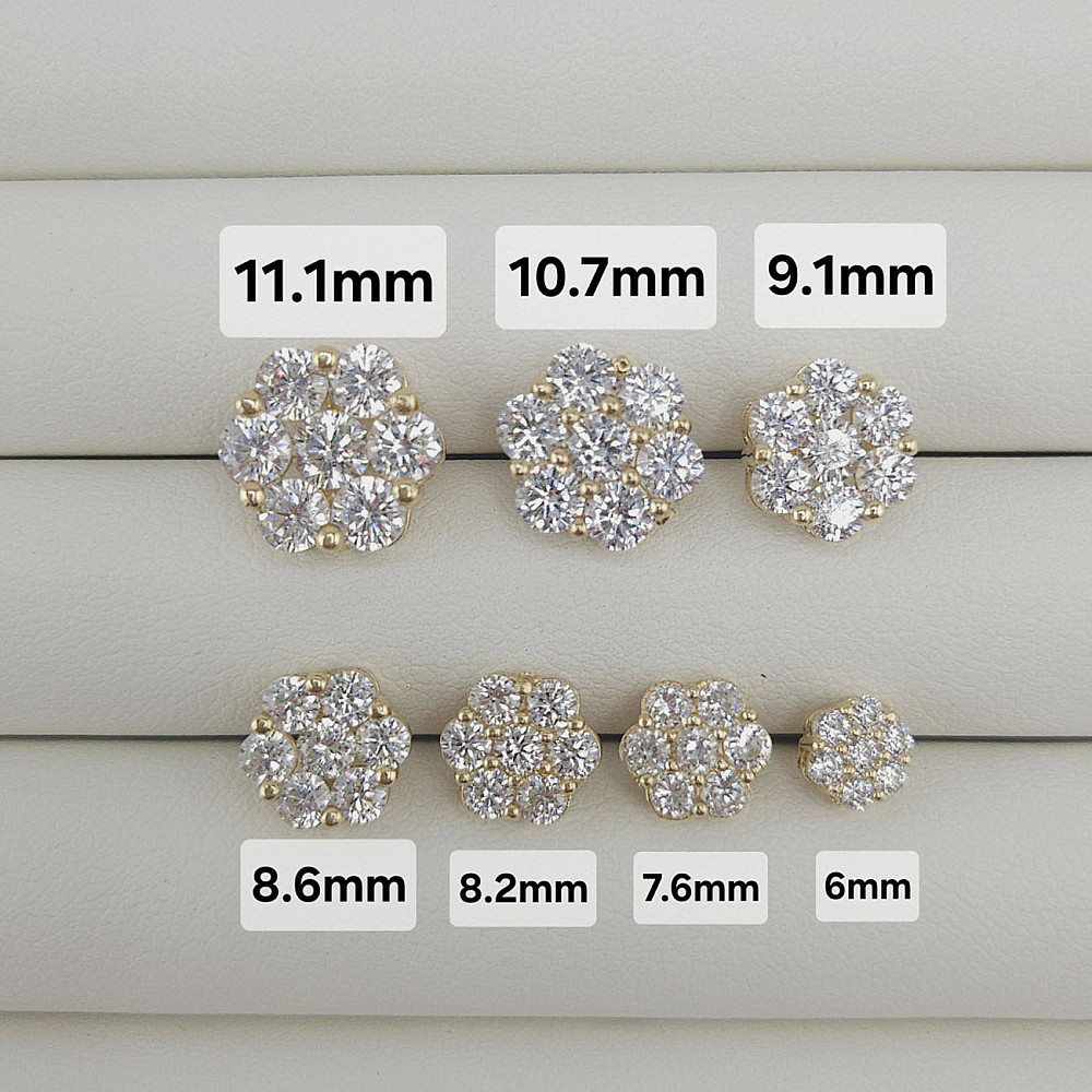 10K Gold CZ Flower Stud Earrings - Multi-Size