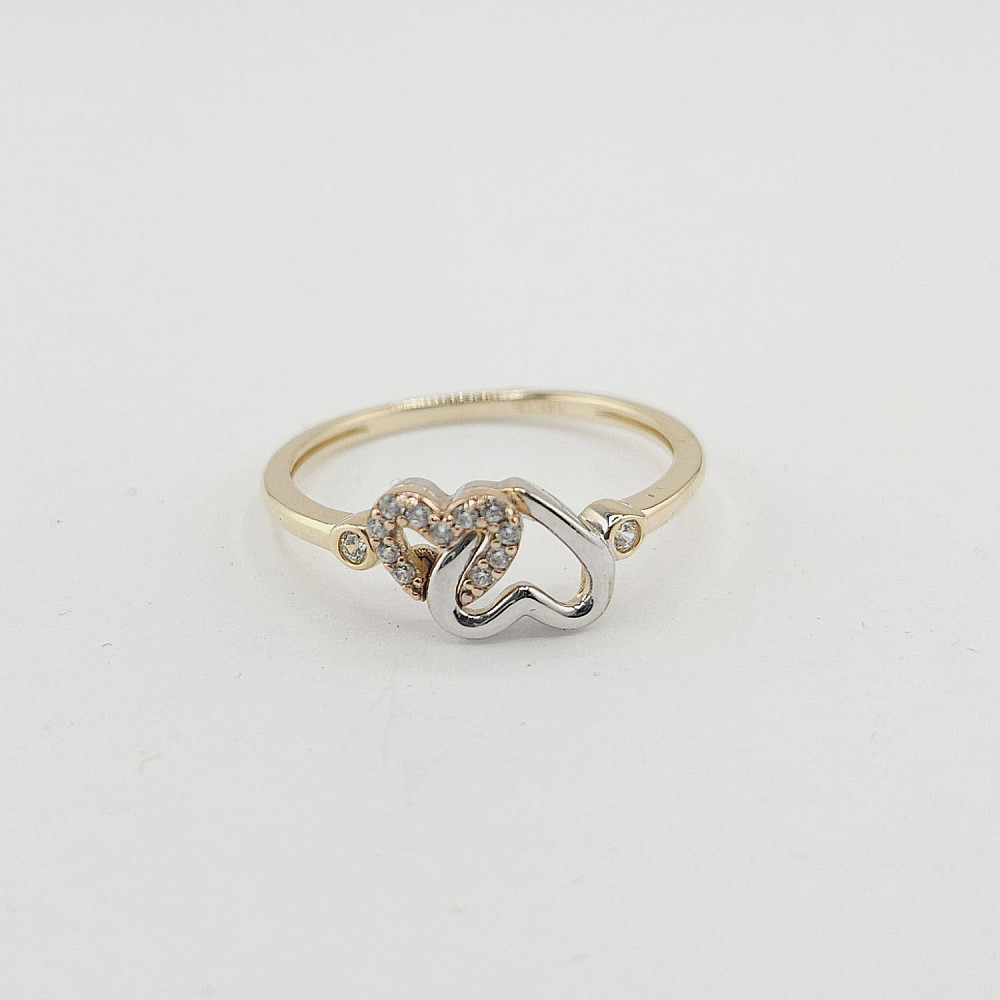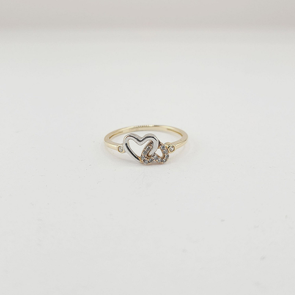 14K Yellow Gold Two Interlocking Hearts Ring with Cubic Stones