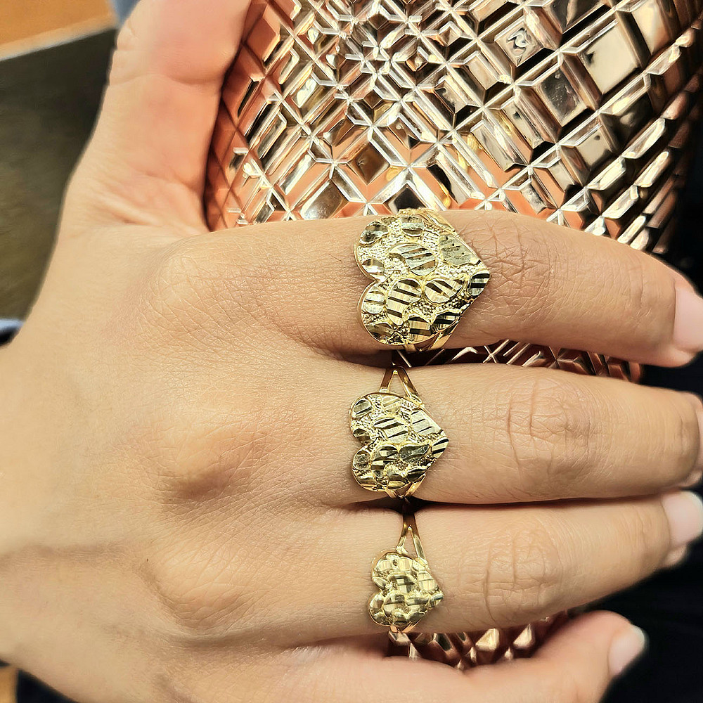 A bold and beautiful heart-shaped nugget ring crafted in genuine 10K solid gold. Unique texture with a vintage vibe — perfect for everyday elegance or as a meaningful gift.