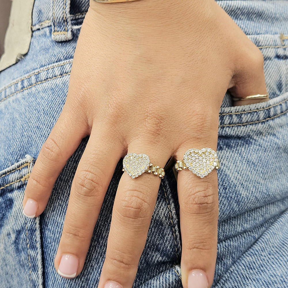 Heart CZ Gold Ring - 10k Solid Gold Ring - Rolex Band