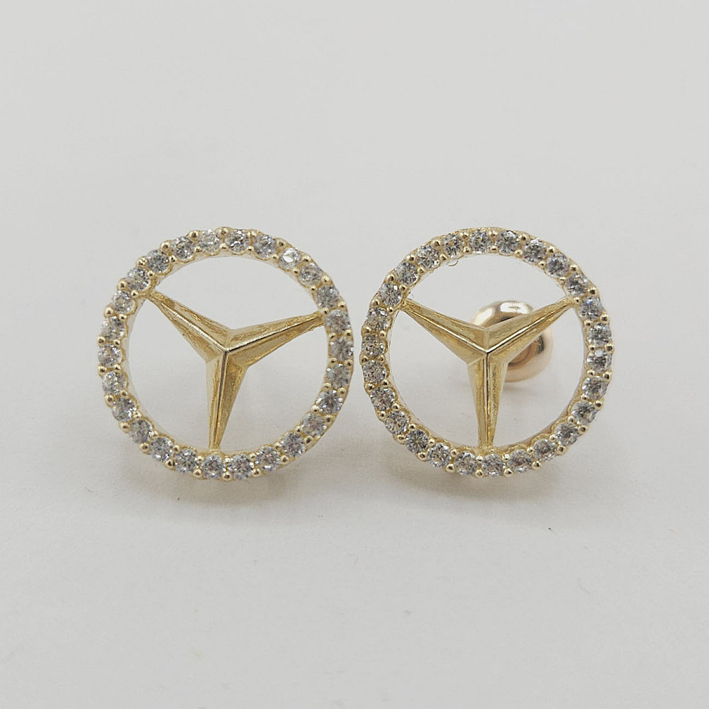Classic Tri-Spoke CZ Stud Earrings 10K Gold Push Back
