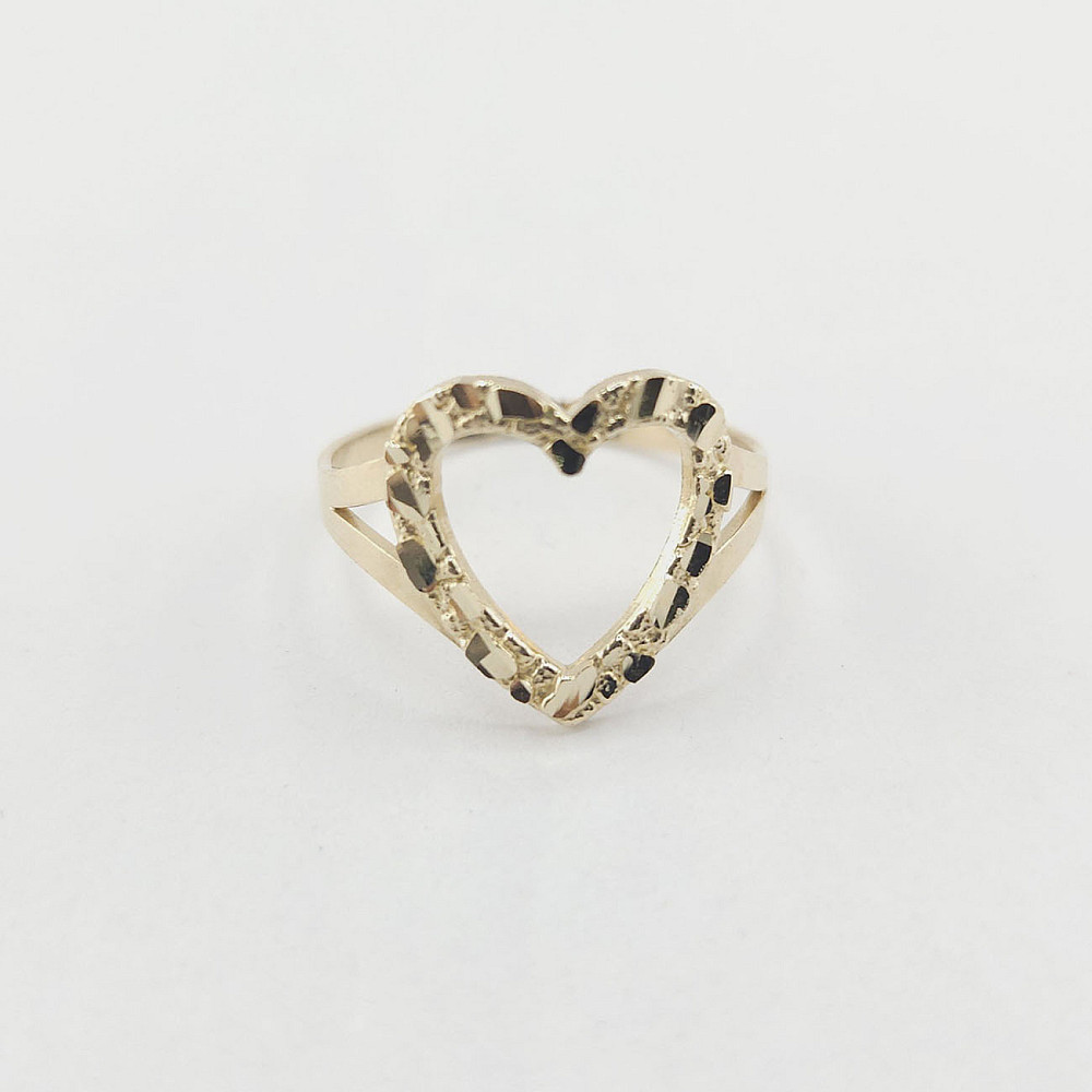 Add a touch of sweet, textured sparkle to your jewelry collection! Our 10K Gold Nugget Heart Ring takes the classic heart shape and gives it a fresh, trendy twist with a diamond-cut nugget texture. It's the perfect "low-maintenance" piece that catches the light from every angle.