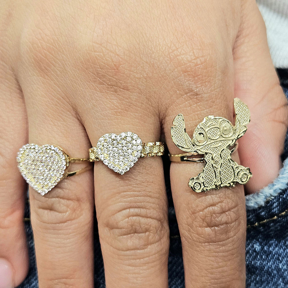 The Golden Stitchy ring is crafted entirely in solid 10K gold, featuring an adorable alien-inspired design with detailed texture.